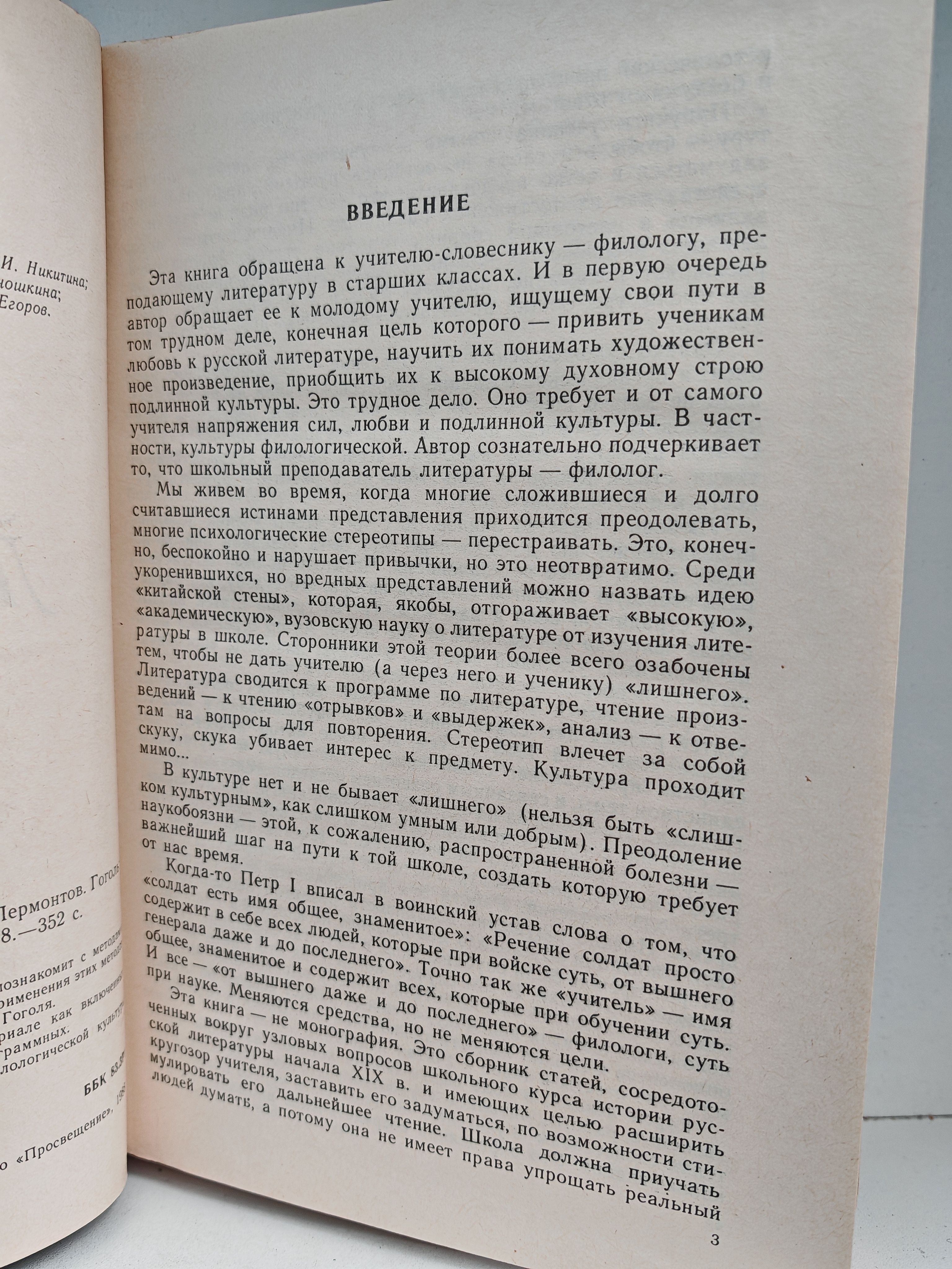 Книга, предназначенная учителю-словеснику, познакомит с методами анализа литературного текста и покажет образцы применения этих методов к изучению произведений Пушкина, Лермонтова и Гоголя. Литературоведческий анализ даётся на материале как включённых в школьную программу произведений, так и непрограммных. Работа будет способствовать повышению филологической культуры читателей.