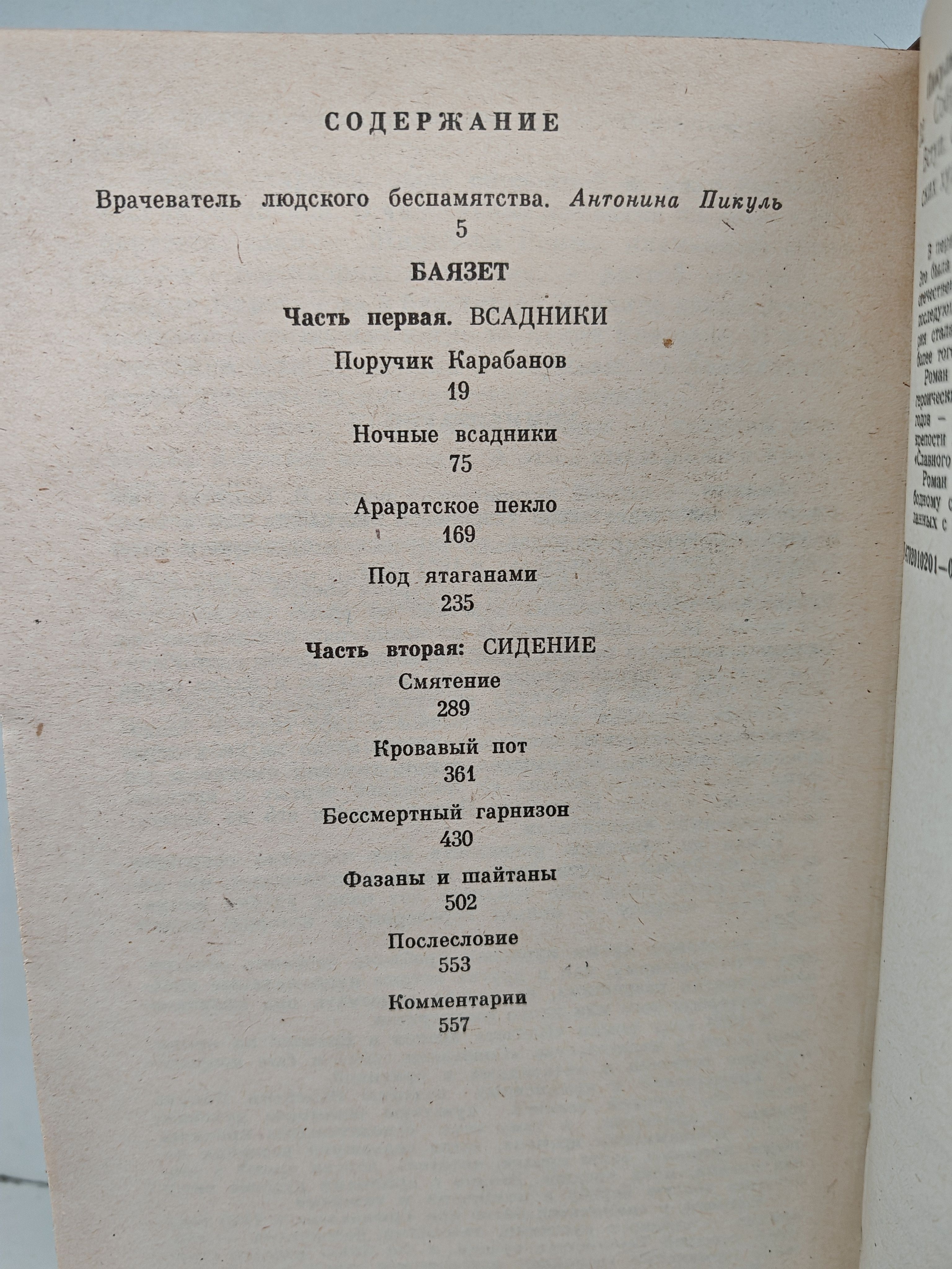 В первый том собрания сочинений Валентина Пикуля, изданного в 1991 году издательством «Товарищество русских художников», вошёл исторический роман «Баязет». Тема произведения — один из драматичных и героических эпизодов русско-турецкой войны 1877–1878 годов — оборона немногочисленного русского гарнизона крепости Баязет, которая вошла в историю под названием «Славного баязетского сидения».