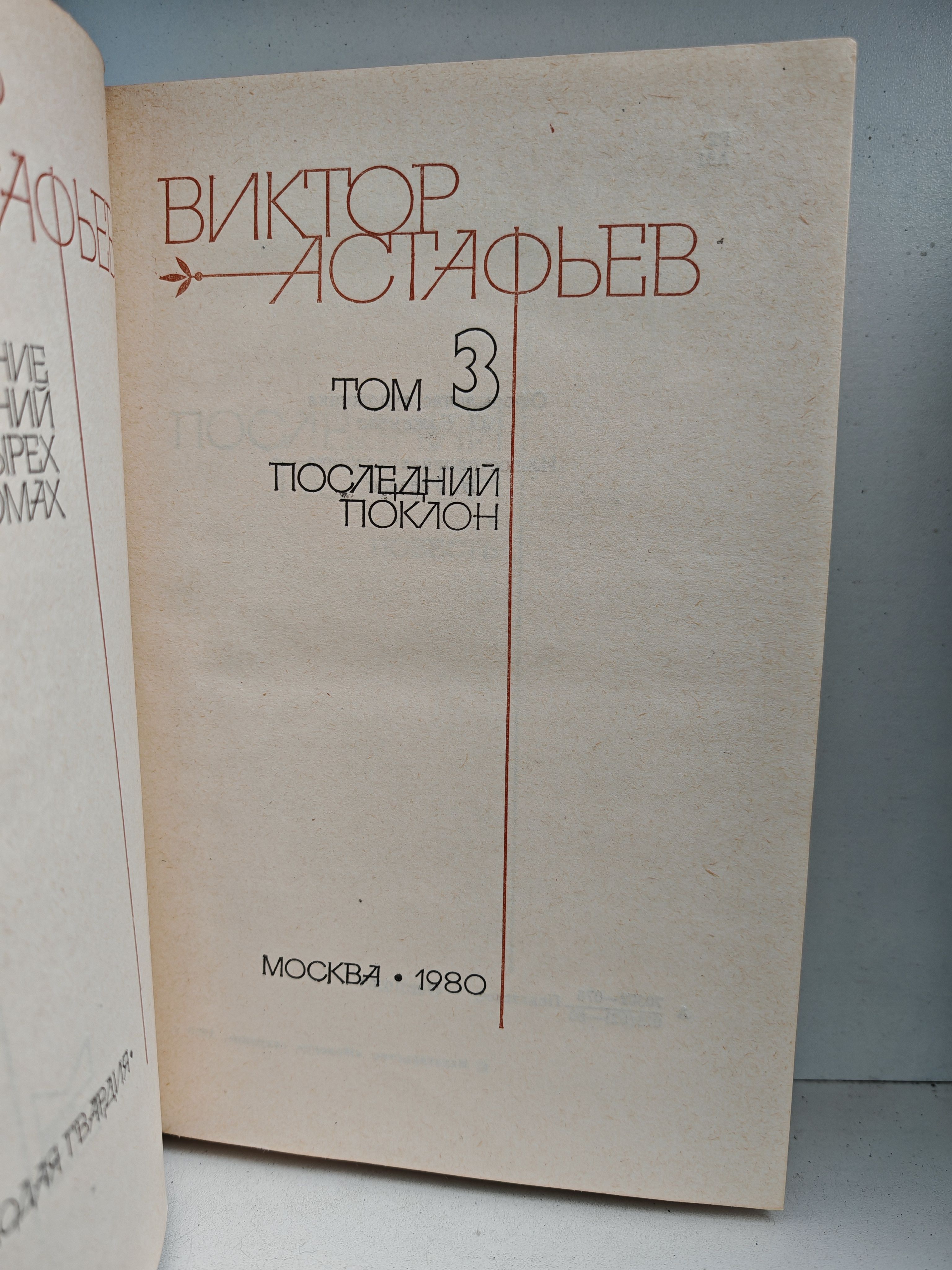 Том 3. Повесть "Последний поклон" состоит из отдельных глав - рассказов, действие которых начинается в конце 20-х годов и заканчивается после Отечественной войны. Это своеобразная поэтическая летопись народной жизни, где через биографию лирического героя раскрывается время и события тех лет.