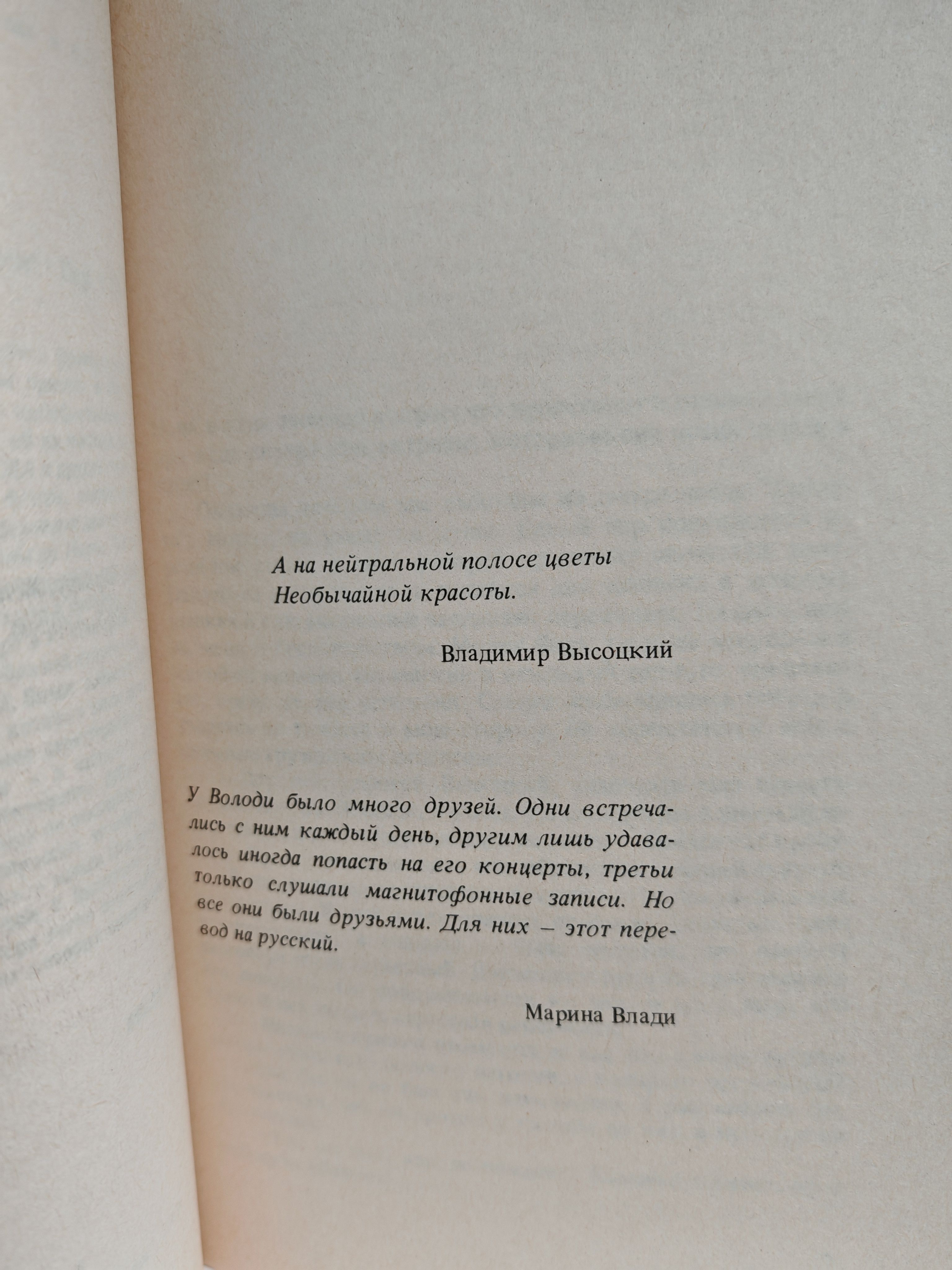 В книге воспоминаний известная французская актриса М. Влади рассказывает о своем приезде в 1967 году на V Московский международный кинофестиваль, о знакомстве с Владимиром Высоцким, об их жизни в Москве, поездках во Францию, Италию, США и другие страны. В книге приведены малоизвестные факты, касающиеся встреч В. Высоцкого с видными зарубежными деятелями культуры - Питером Бруком, Робертом де Ниро, Лайзой Минелли и др. Автор подробно описывает процесс работы В. Высоцкого над своими стихами и песнями, рассказывает о его выступлениях в театре и на концертах перед многочисленной советской и зарубежной аудиторий.