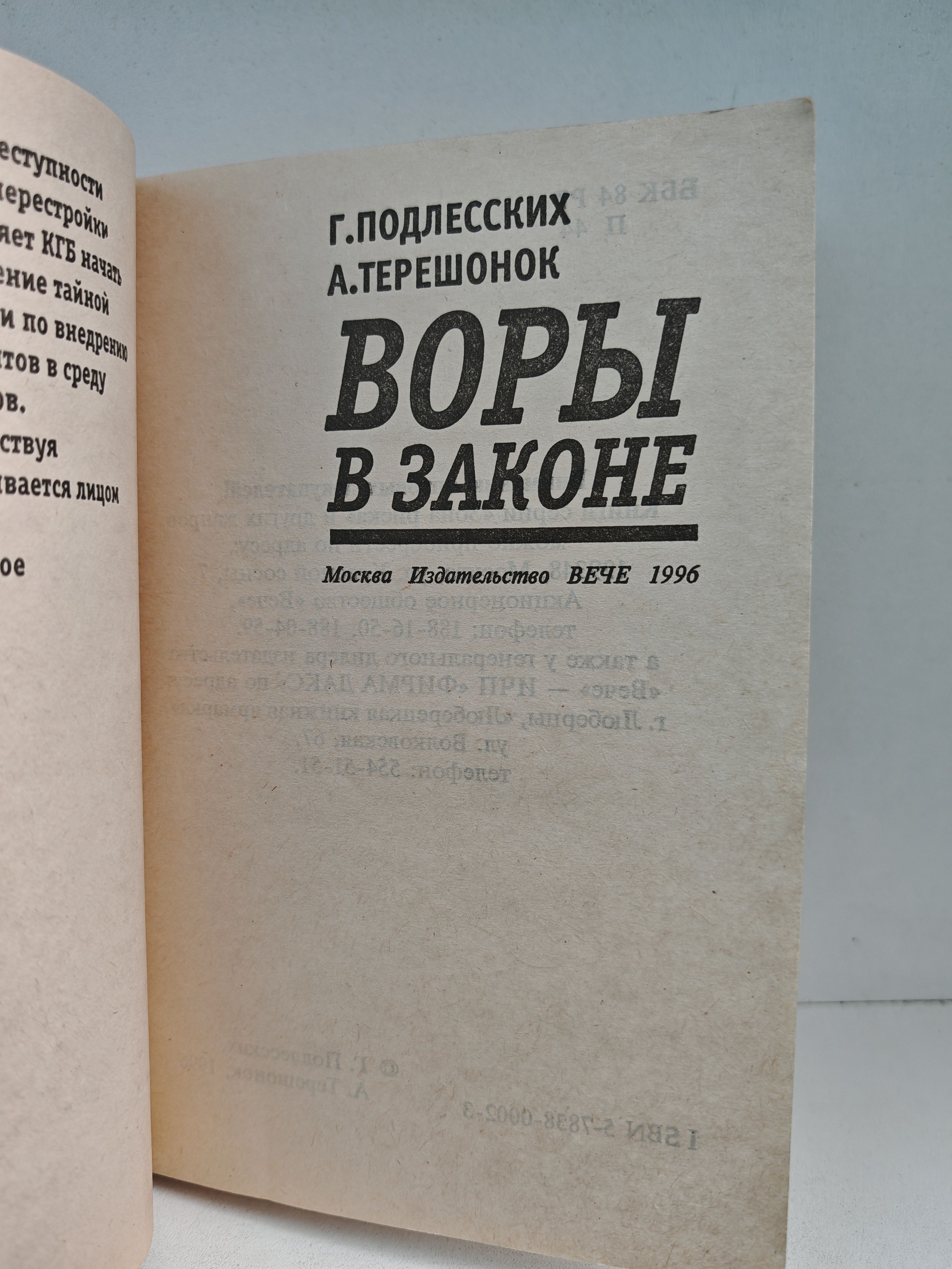 Книга Г.Подлесского и А.Терешонка «Воры в законе», стала бестселлером книжного рынка, пожалуй, самое серьезное обращение к теме разрастания «спрута» организованной и профессиональной преступности в нашей стране.