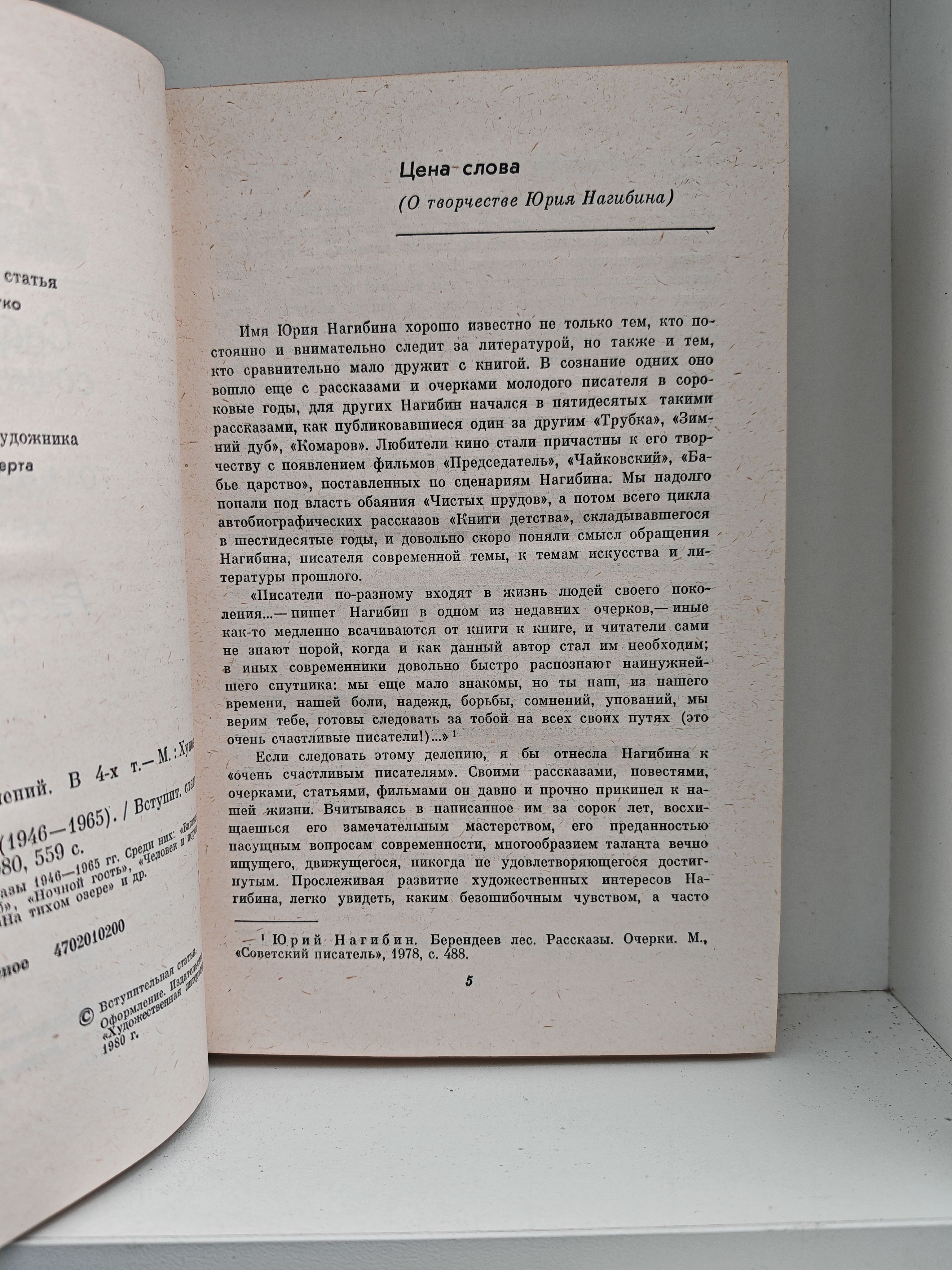 Имя Юрия Нагибина хорошо известно не только тем, кто постоянно внимательно следит за литературой, но также и тем, кто сравнительно мало дружит с книгами. Становление человека - одна из главных тем Нагибина на протяжении всей его творческой жизни.