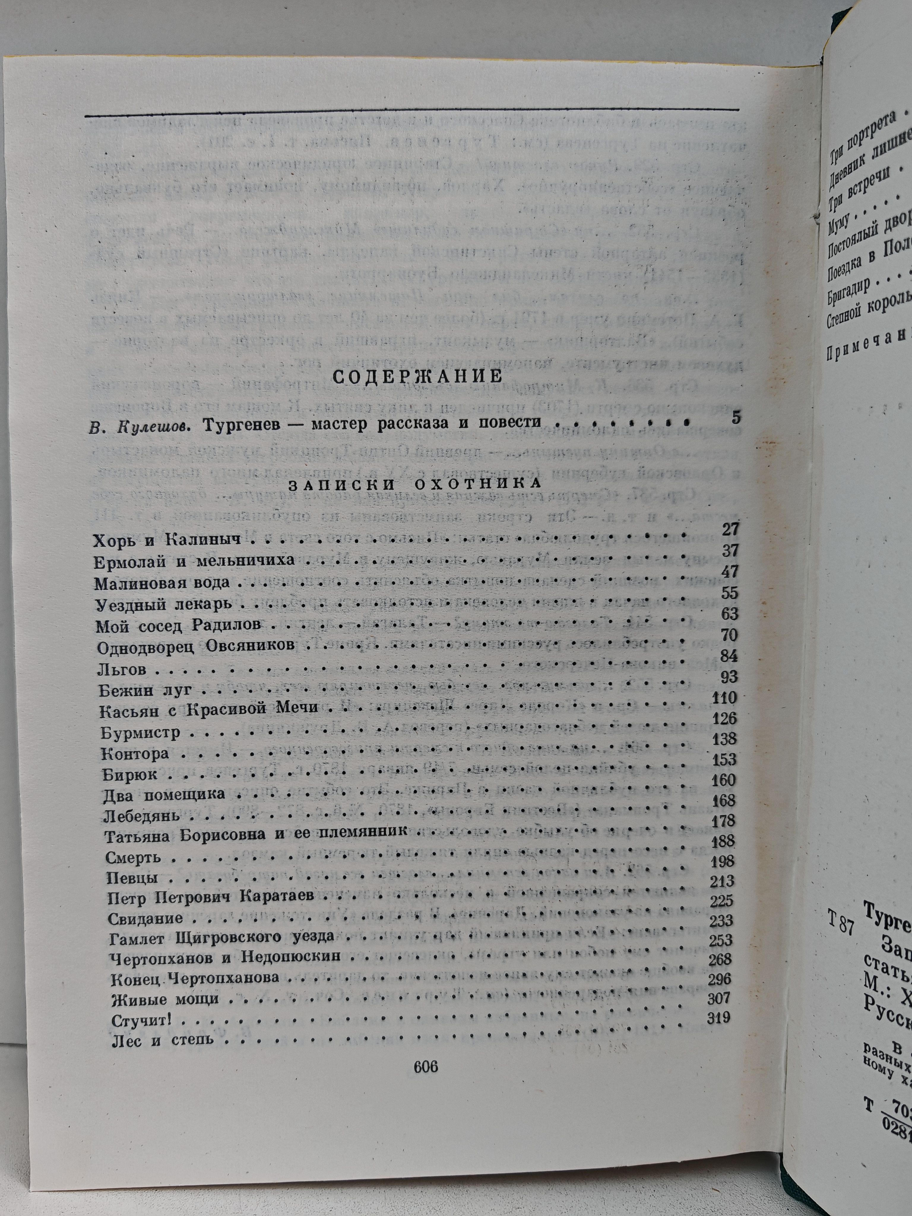 В том включены "Записки охотника", повести и рассказы разных лет, близкие этому циклу по своему идейно-художественному характеру.
