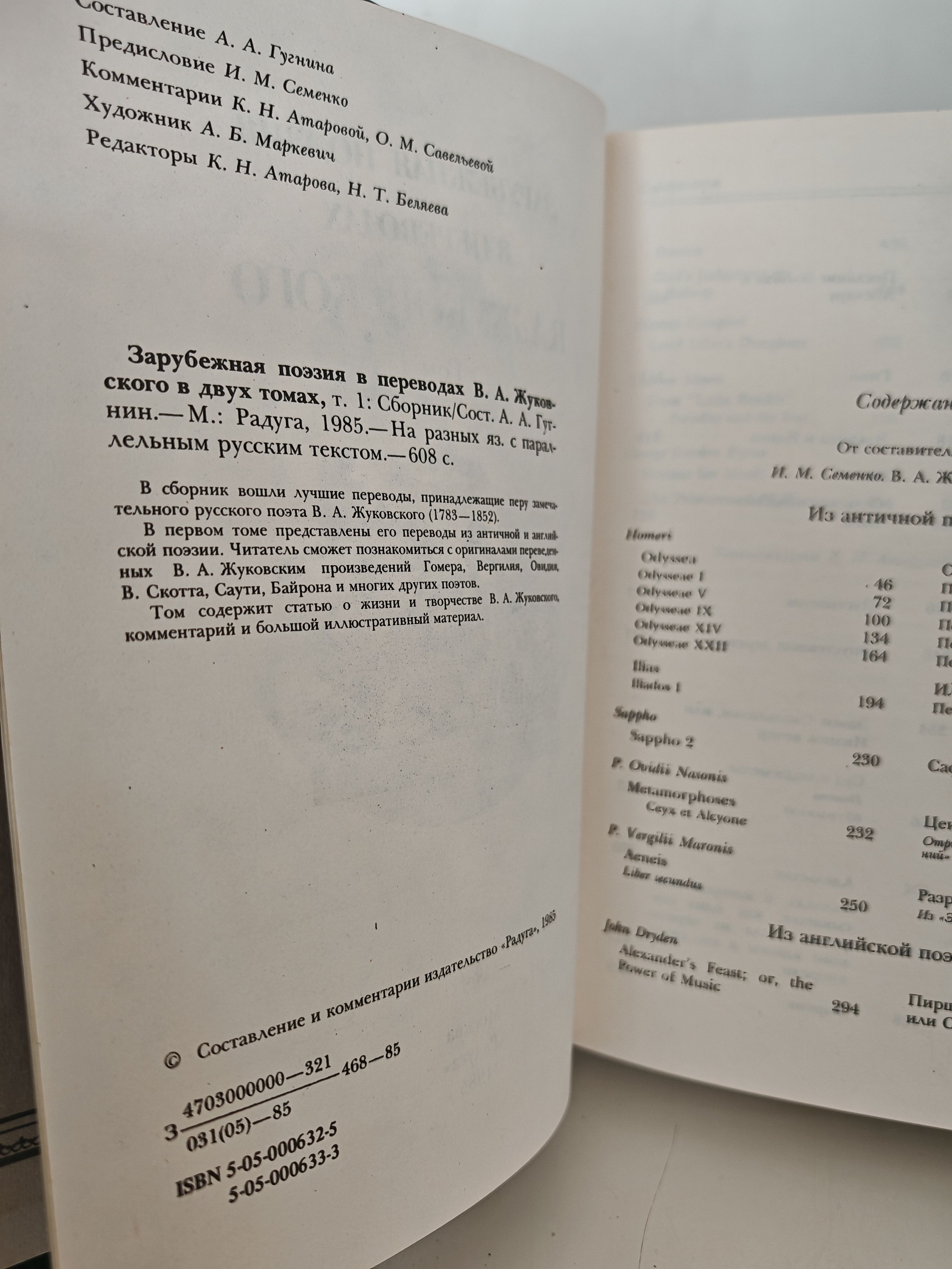 В сборник вошли лучшие переводы, принадлежащие перу замечательного русского поэта В. А. Жуковского (1783 - 1852).В первом томе представлены переводы из античной и английской поэзии. Представлены оригиналы переведённых произведений Гомера, Вергилия, Овидия, В. Скотта, Байрона и других поэтов.Том содержит статью о жизни и творчестве В. А. Жуковского.Во втором томе представлены переводы из немецкой, французской и испанской поэзии, публикуемые параллельно с оригинальными произведениями Гёте, Шиллера, Уланда, Лафонтена, Парни, Сервантеса, Лопе де Веги и других поэтов.В том вошли также статьи В.А.Жуковского о мастерстве перевода, критический материал о Жуковском-переводчике.Издание содержит комментарии и большой иллюстративный материал.