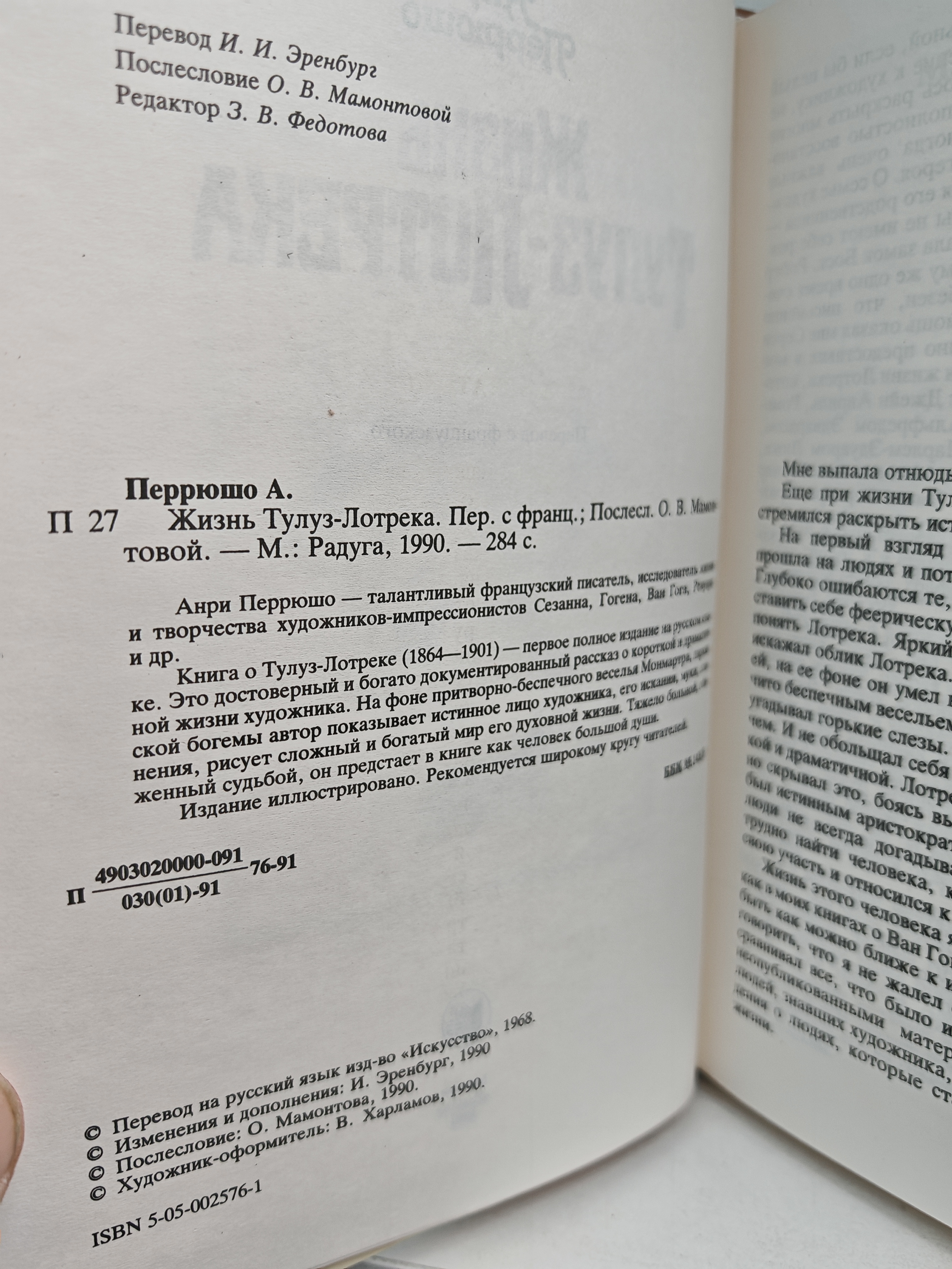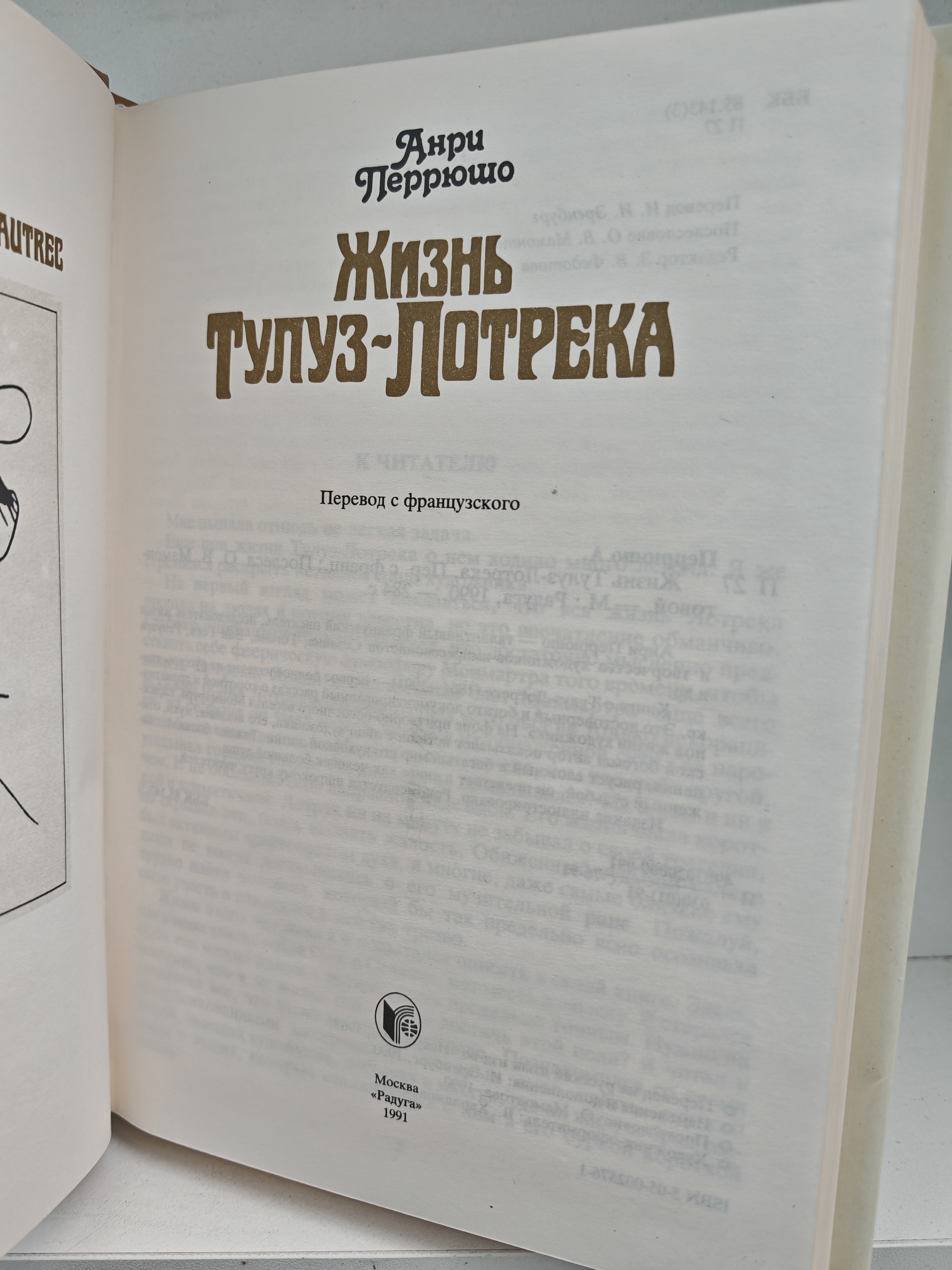 Анри Перрюшо - талантливый французский писатель, исследователь жизни и творчества художников-импрессионистов Сезана, Гогене, Ван Гога, Ренуара и др. Книга о Тулуз-Лотреке (1864-1901) - первое полное издание на русском языке. Это достоверный и богато документированный рассказ о короткой и драматической жизни художника. На фоне притворно-беспечного веселья Монмартра, парижской богемы автор показывает истинное лицо художника, его искания, муки, сомнения, рисует сложный и богатый мир его духовной жизни. Тяжело больной, обиженный судьбой, он предстает в книге как человек большой души. Издание иллюстрировано. Рекомендуется широкому кругу читателей.